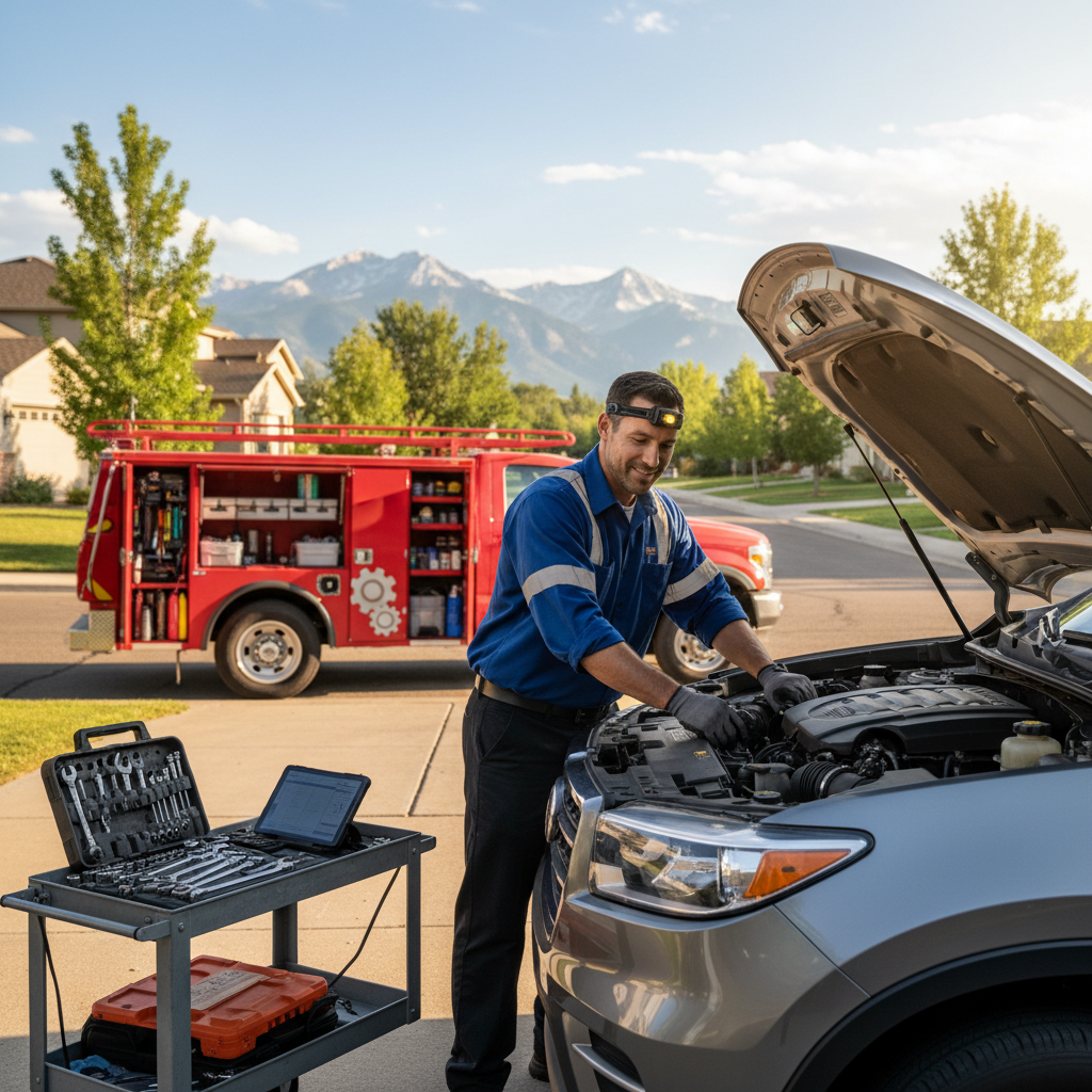 The Pit Crew That Comes To You. Book online or call (720) 773-0980 — we bring the shop to your driveway.